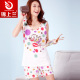 背心睡衣女士套装夏天无袖短裤纯棉卡通可爱休闲家居服全棉可外穿
