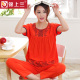 锦上兰家居服中年妈妈睡衣女夏季纯棉套装梭织全棉短袖长裤绣花薄