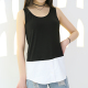 2017春季新款假两件打底背心女百搭无袖圆领下摆显瘦内搭拼接衬衫
