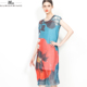 EUROPRIMO/派茉夏季女装真丝连衣裙印花宽松女圆领短袖直身裙长裙