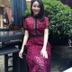 2017年夏装新款女装呛口*小辣椒明星同款睫毛蕾丝收腰显瘦连衣裙