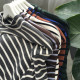 【JM】摩登复古风 丝滑雪纺料 竖条纹 经典咖啡棕 短袖衬衫 男女