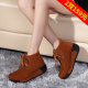 秋冬新款加绒系带短靴女圆头中跟坡跟短筒靴子舒适休闲女棉靴裸靴