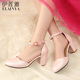 韩版鞋子新款春夏尖头中跟粗跟单鞋女一字搭扣水钻包头凉鞋伴娘鞋