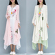 春夏新款民族风中国风旗袍宽松腰水墨竹叶印花七分袖两件套连衣裙