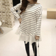 春装新款连衣裙女韩版宽松大码裙子蝙蝠短袖中长带帽条纹连衣裙女