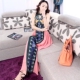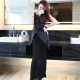 2017夏季女装新款重工刺绣雪纺立领无袖挂脖漏肩修身长裙连衣裙