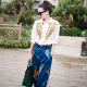 2017春季款轻奢名媛清丽优雅刺绣珍珠水钻改良日常旗袍连衣裙礼服