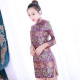 2017春新款华丽优雅中国风紫色金丝刺绣改良日常修身旗袍式连衣裙