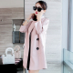 欧洲站 2016春季新款女装裸粉七分袖宽松时尚中长款皮衣夹克外套