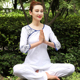 依琦莲春夏新款白色瑜伽服套装女表演服 中袖青花瓷瑜珈愈加健身
