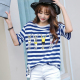 2017夏装新款印花半袖体恤打底衫宽松条纹T恤女短袖学生大码上衣