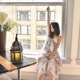 Forevercan夏新品 法国小名媛 真丝印花 大摆飘逸长裙 度假连衣裙