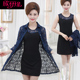 中老年女装春夏款新中长款连衣裙时尚修身妈妈装长袖针织衫两件套