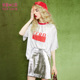 妖精的口袋让人着迷 2017夏装新款宽松撞色圆领字母金属T恤女短袖