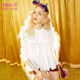 妖精的口袋点燃情书2017春装新款宽松甜美木耳边A摆长袖衬衫女