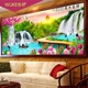 新款风景流水生财十字绣客厅山水画现代简约大幅优雅清新满绣棉线