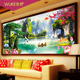 3D迎客松十字绣客厅山水画流水生财2米简约现代风景清新优雅印花5