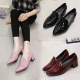 尖头低跟单鞋浅口韩版舒适中跟蝴蝶结瓢鞋细跟漆皮鞋女鞋工作鞋子