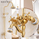 全铜欧式花洒镀金色洗浴沐浴喷头浴室升降淋浴花洒套装冷热水龙头