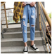 夏季韩国ulzzang原宿风gd权志龙同款破洞九分牛仔裤男潮小脚裤子
