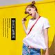 欧洲站2017夏季韩版黄色纯棉时尚订带字母破洞圆领短袖宽松T恤女