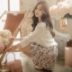 夏装2017新款女韩版两件套小清新印花时尚套装裙女夏蝴蝶结连衣裙