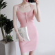 性感连衣裙夏装2017新款女针织心机修身小清新粉色包臀背带长裙子