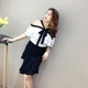 2017大码女装吊带一字领上衣黑白拼接荷叶边t恤加肥加大胖mm1998