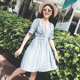 2017夏装新款韩版显瘦短袖连衣裙小清新条纹衬衫裙收腰套装女短裙