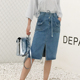 半身裙女夏2017新款高腰中长款包臀小清新开叉修身百搭系带牛仔裙