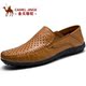 金戈 骆驼男鞋夏季户外休闲鞋软底驾车鞋真皮镂空皮鞋透气豆豆鞋