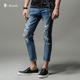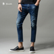 bunada男牛仔裤男九分裤小脚裤学生男生破洞牛仔长裤夏季青年男装