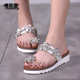 2016新款防水台厚底坡跟水钻凉鞋女夏波西米亚平底花朵夹趾松紧带