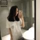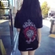 VOVAVI 百搭新款双纱磨毛植绒印玫瑰花潮流刺绣花卉情侣短袖女t恤