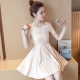 韩国2017新款女夏裙子小清新中长款v领收腰显瘦蕾丝白色连衣裙 仙