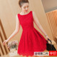 红色连衣裙春款2017新款无袖显瘦蕾丝宴会礼服气质淑女a修身显瘦