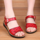 夏季平底妈妈鞋凉鞋女鞋红色软底平跟中老年女凉鞋60岁奶奶凉鞋子
