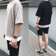 方寸先生夏季男生日系纯色拼接运动裤简约中裤学生条纹拼接短裤男