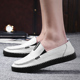 秋季皮鞋男休闲鞋韩版潮鞋套脚低帮鞋透气男鞋子真皮白色豆豆鞋