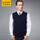 卡帝华菲秋季新款V领羊毛衫男无袖坎肩 中年男士羊毛背心马甲纯色