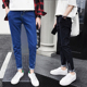 夏季英伦百搭九分裤男生八分休闲裤薄款学生9分弹力小脚裤修身潮