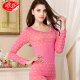 浪莎保暖内衣 女蕾丝圆领薄款塑身美体内衣棉毛衫 秋衣秋裤套装女