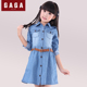 2017新款夏装短袖复古纯棉女大童牛仔裙儿童连衣裙公主裙女孩童装