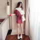 大码女装2017春装新款韩版胖mm衬衫宽松套装牛仔短裙胖妹妹两件套