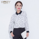大码女装胖MM时尚显瘦撞色拼接针织衬衫5165