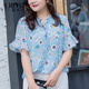 蓝若水胖mm雪纺衫夏2017新款大码宽松印花荷叶边短袖t恤1917