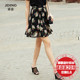 娇鼎夏新款碎花半裙学院清馨范小伞裙飘逸雪纺拼皮复古印花A字裙