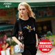 娇鼎夏新款刺绣T恤中袖圆领绣花百搭针织衫短款原创五分袖女上衣