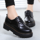 2016夏季新款英伦复古系带黑色单鞋平底松糕女鞋圆头厚底小皮鞋女